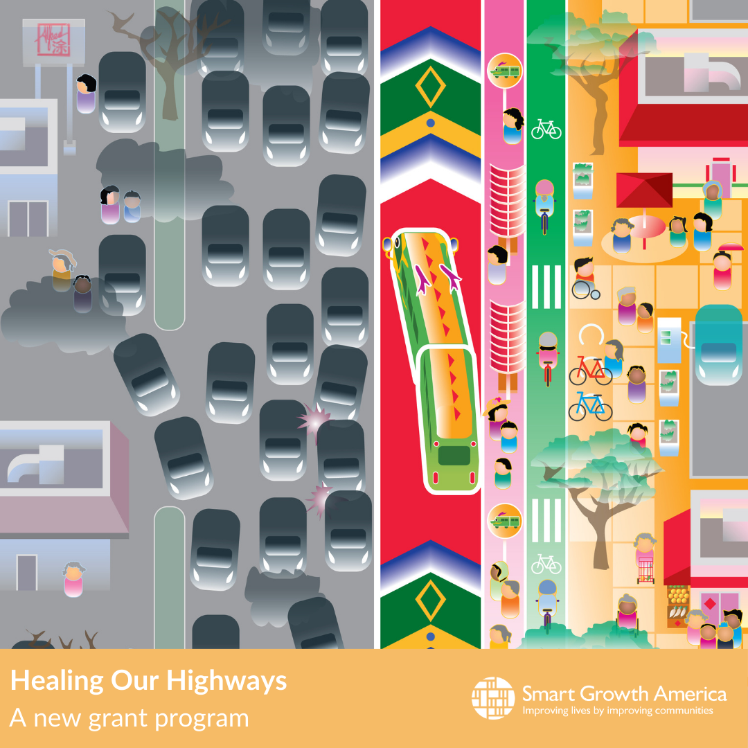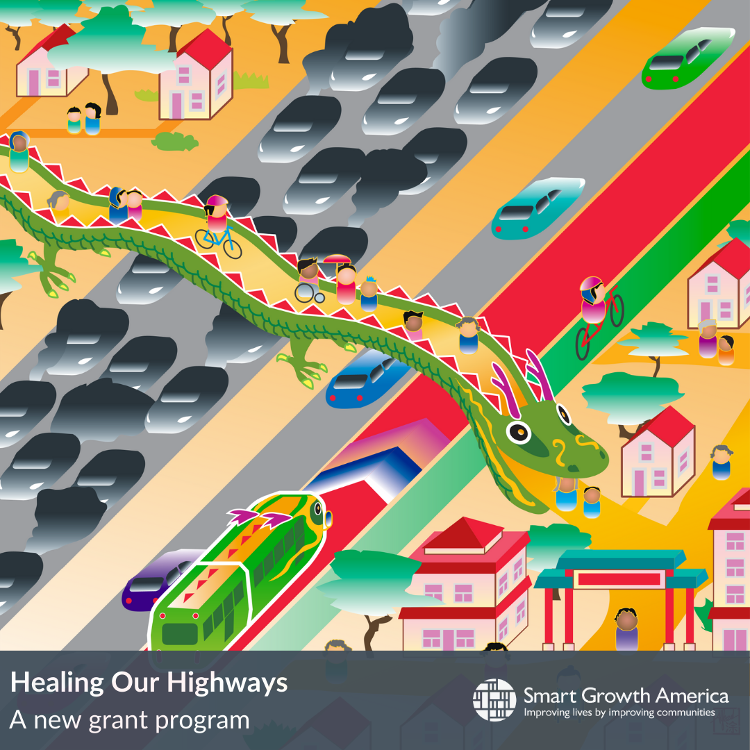 Smart Growth America, with support from the National Endowment for the Arts and the Kresge Foundation, is requesting applications for our new grant program, Healing Our Highways. This initiative aims to generate creative ideas and activities that build knowledge, connections, and power within disadvantaged communities most harmed by transportation systems and climate change. The program period is April to October 2024, with public-facing activities taking place from June to August 2024.