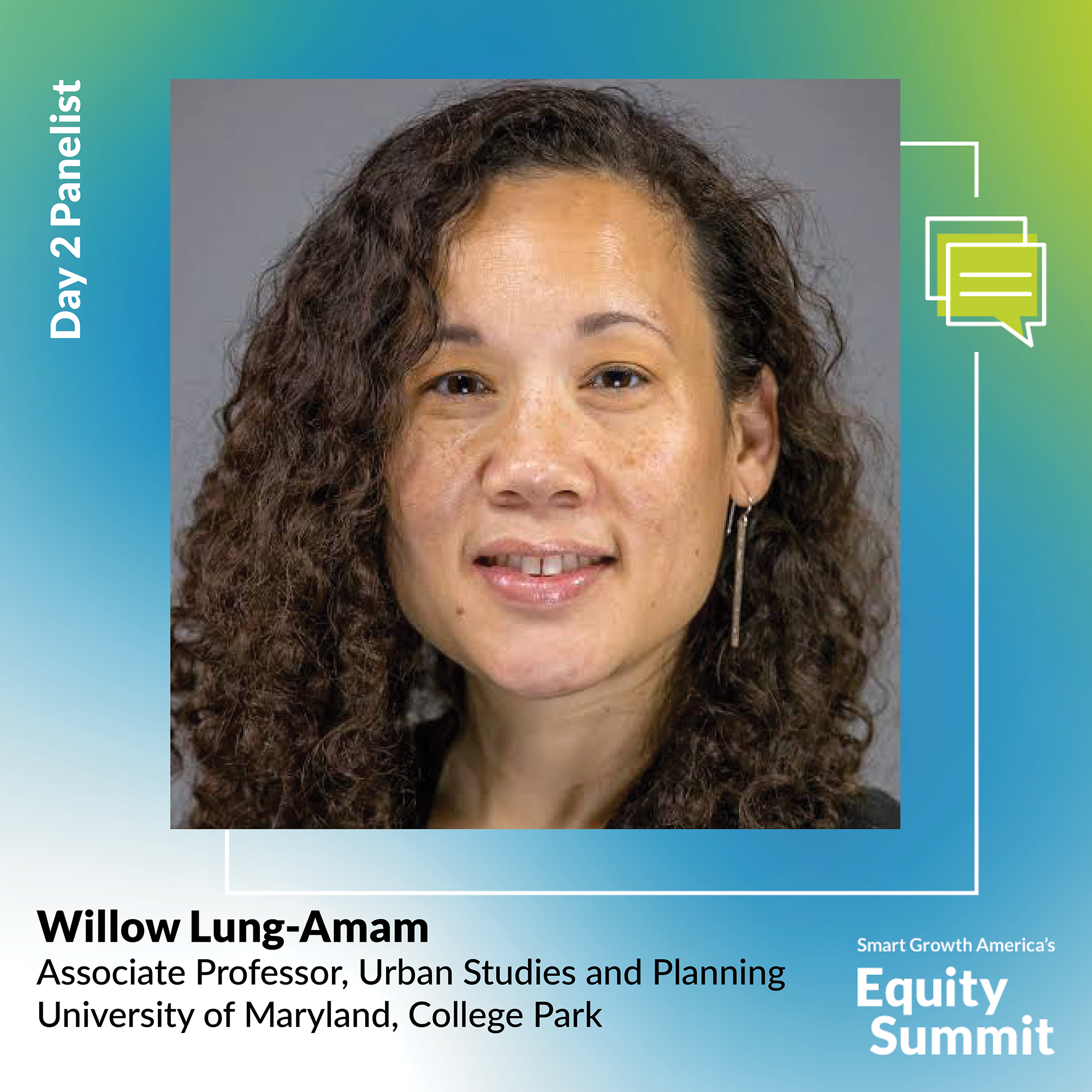 Willow S. Lung-Amam is an Associate Professor in the Urban Studies and Planning Program at the University of Maryland, College Park. At UMD, Willow also serves as Director of the Small Business Anti-Displacement Network, Director of the Urban Equity Collaborative, and Director of Community Development at the National Center for Smart Growth Research and Education. Her scholarship focuses on how urban and suburban policies and plans contribute to and can address social inequality, particularly in neighborhoods undergoing rapid racial and economic change.