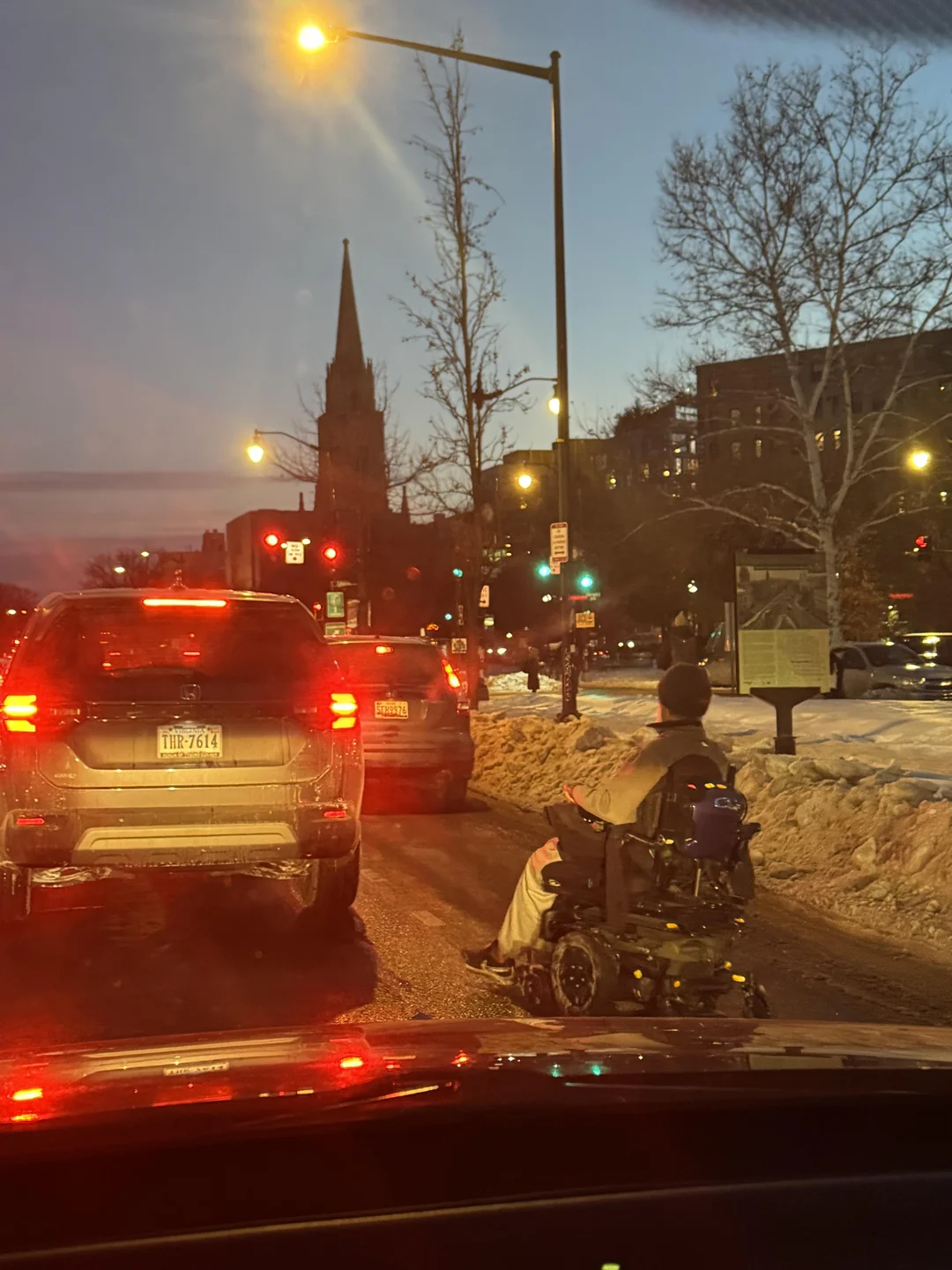 I use a wheelchair, and it’s common for winter conditions create extra obstacles for me to navigate. But I’m not unrealistic; I did not expect the snow and ice from the recent storm would be cleared instantly or even overnight. But when I learned that the streets near my home had been plowed, I was excited to get out after being stuck at home for three days. However, when I left my apartment and got to the corner, I realized my journey was over before it even started. While the streets were relatively clear for cars, there were mounds of snow on top of curb ramps, and sidewalks were only inconsistently cleared. I was left with serious concerns that even if I was able to cross this street, the next intersection could be even worse. Some pedestrians were carefully climbing over mounds of ice and snow, but it was not possible—forget about being safe—for me to proceed.