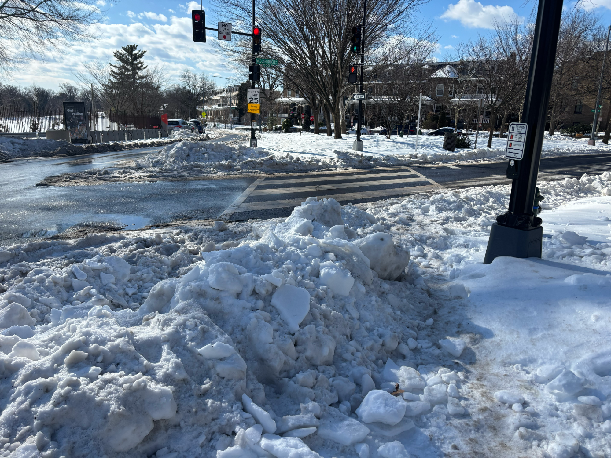 After the recent winter storm, DC prioritized plowing roads for cars, while leaving sidewalks, curb ramps, and bus stops inaccessible. For me, and the many other DC residents who get around walking or rolling, the city remains essentially closed. It’s yet another example of how DC’s transportation decisions continue to prioritize cars over people.