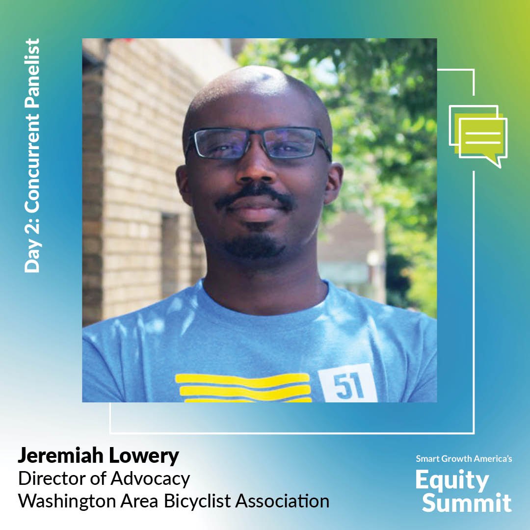 Jeremiah Lowery is the Director of Advocacy for the Washington Area Bicyclist Association. He is passionate about transportation justice and community empowerment. He was named one of Elevation D.C. Magazine’s 50 under 50 Food Heroes and he was also named Black Millennial for Flint's Young, Gifted & Green 40 Under 40. Jeremiah was appointed by the Mayor of D.C. to be on the District’s first Food Policy Council, he is a former board member of the D.C.Sierra Club, WPFW radio, and former Chair of D.C. for Democracy, an all-volunteer-run advocacy group in DC with over 5,000 members.