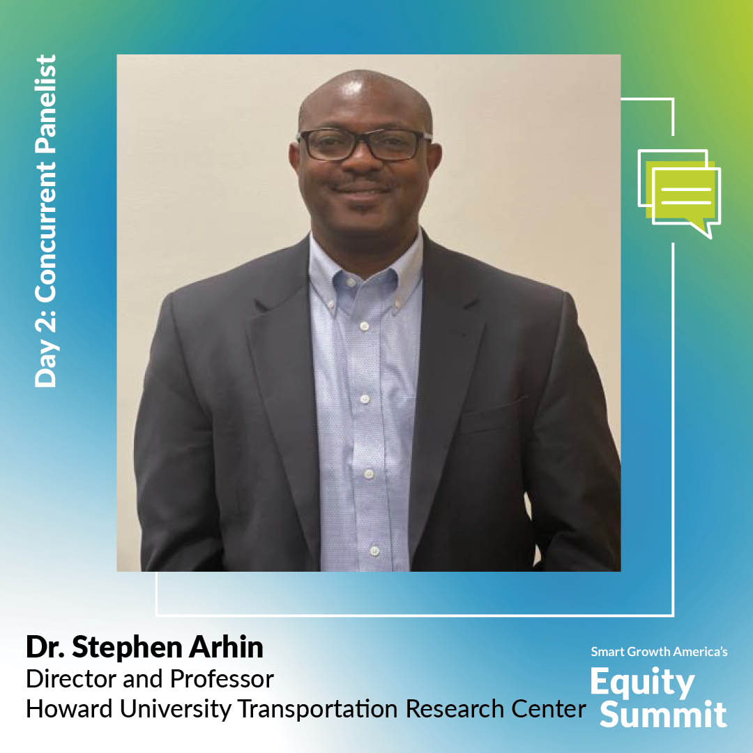 Dr. Stephen ArhinDr. Stephen A. Arhin, is a Professor in the Civil and Environmental Engineering Department and the Director of the Howard University Transportation Research Center. He holds a B.S in Civil Engineering from University of Science and Technology (Ghana), a M.Eng. in Transportation Engineering from Howard University, Washington DC, and a D.Sc. in Transportation Engineering from The George Washington University. Dr. Arhin has significant experience in civil engineering with emphasis in highway engineering, traffic operations and safety, and Intelligent Transportation Systems. He is a registered Professional Engineer (P.E.) in DC, MD, DE and VA. Dr. Arhin also possesses a Project Management Professional Certification (PMP) and a Certification in Research Administration (CRA) and finally a registered Professional Traffic Operations Engineer (PTOE). He is also a Fellow of the Institute of Transportation Engineers.