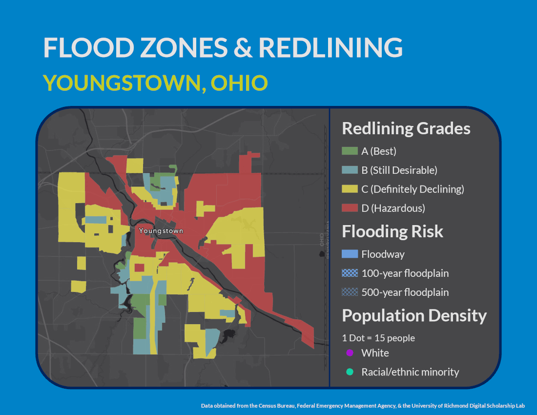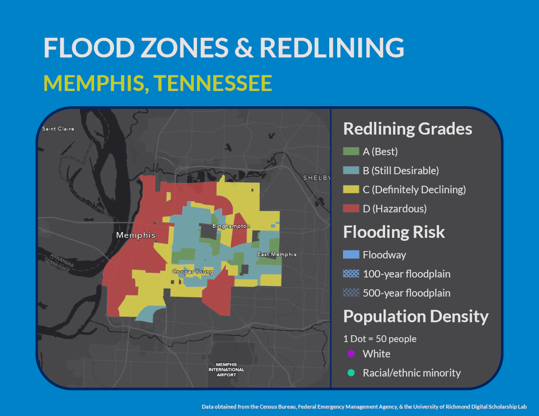 For example, flood mitigation efforts have often prioritized wealthier and whiter communities, where property values are higher. For communities of color, like those in Baton Rouge, flooding-related infrastructure is crumbling. Even for cities further from the coast, like Detroit and Baltimore, the aging infrastructure that contains ghost streams, rivers, and wetlands (which were buried underground to provide more land for development) contribute to flooding problems in historically underserved neighborhoods. As a result, for many cities across the U.S., formerly redlined areas, where communities of color are often still located, are disproportionately vulnerable to flooding.