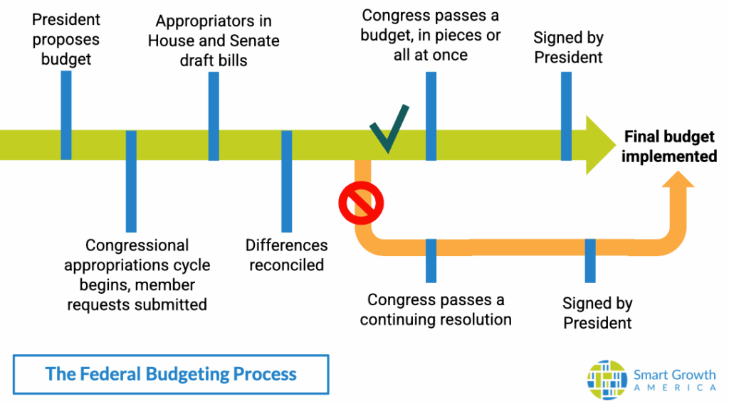 A government shutdown occurs if Congress does not pass a government funding bill of some kind–either a full suite of appropriations bills or a continuing resolution–by September 30th in a given year. Broadly speaking, a government shutdown requires federal agencies to pause their activity, furlough workers, and spin down their activity to what is minimally required for safety or essential work functions of the government. In practice, what this means varies from agency to agency and from presidential administration to presidential administration because a great deal of discretion around the design and implementation of a shutdown plan falls to the Office of Management and Budget (OMB). For example, the Trump Administration, under the leadership of OMB Director Russ Vought, has threatened to go beyond the standard practice of furloughing federal workers during a shutdown and instead seek further reductions in force. For now, the HUD Contingency Plan for the lapse in appropriations is available here, the EPA Contingency Plan is available here, and the DOT Contingency Plan is available here. The contingency plans provide preliminary guidance on staffing and operations plans during the shutdown at the respective agencies.