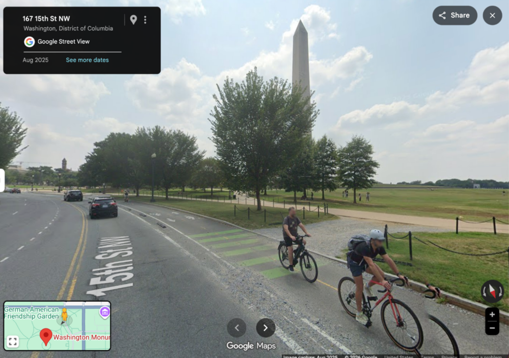 Nonetheless, the Washington Area Bicyclist Association (WABA) and other advocates are sounding the alarm that a significant portion of the bike lanes will be torn up very soon, specifically the portion south of Constitution Avenue. This segment, which crosses the National Mall and is under federal control, was built in 2021.