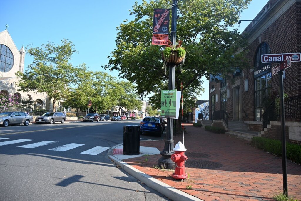 Crosswalk with a drive smart sign at the corner of Canal and Broad Street in Red Bank. Red Bank began making meaningful progress under its 2018 Complete Streets resolution, using it as a springboard for several community-driven projects. In 2023, the town tested temporary bike lanes through a safety demonstration project aimed at gathering feedback and evaluating permanent changes—explicitly citing the 2018 policy as a guiding framework. That same year, Red Bank announced plans for pedestrian safety upgrades like bump-outs along heavily-trafficked Shrewsbury Avenue. They also added a new bike lane on Harrison Street, a residential corridor.
