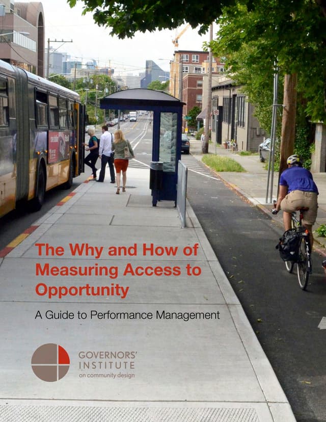 The Governors’ Institute on Community Design, a program of Smart Growth America, has created a resource on the data, tools, and methodologies transportation officials need to measure access to opportunity. The Why and How of Measuring Access to Opportunity: A Guide to Performance Management is written to help transportation agencies integrate measurements of “access to opportunity” into their planning and investment decisions.